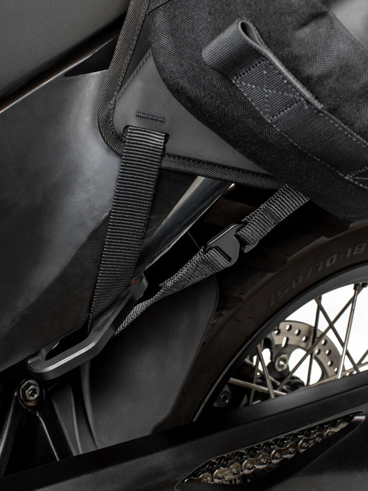The set length straps make mounting a breeze and the purpose designed main body shape provides a tight, secure fit with plenty of distance from the exhaust. It takes less than a minute to mount the system to the bike and just seconds to remove it.
